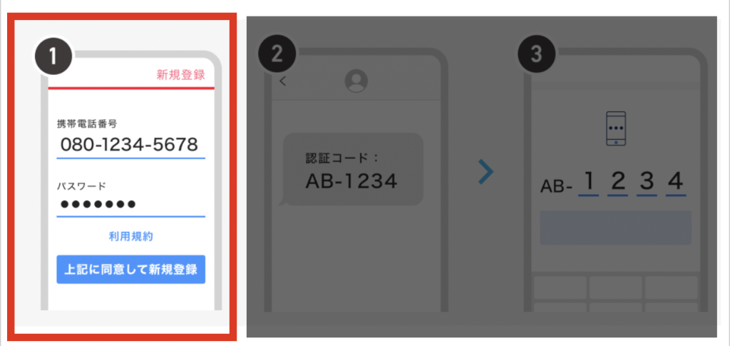 2 アプリを起動して、あなたの電話番号と好きなパスワードを入力してください