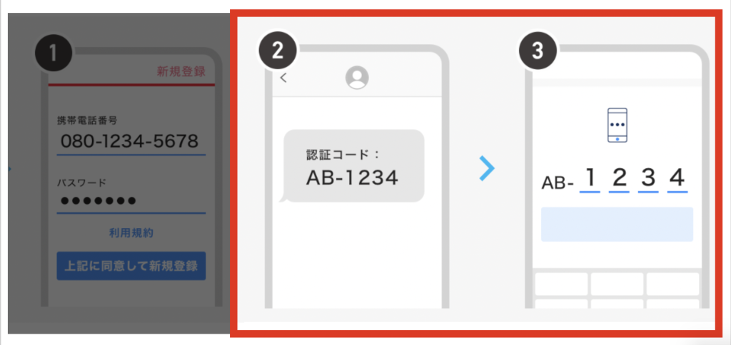 3 SMS(short message)に認証コードが届くので、それを入力する