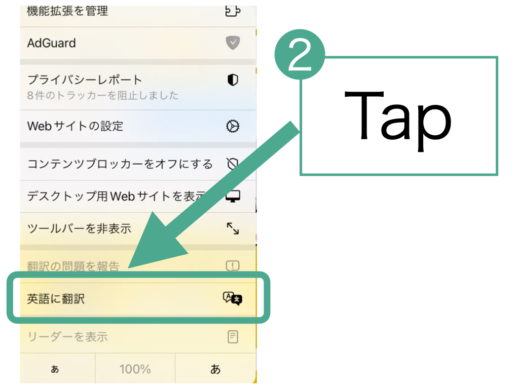 あなたがsafariを使ってウェブサイトを見ている場合は、以下の方法で英語に変換できます